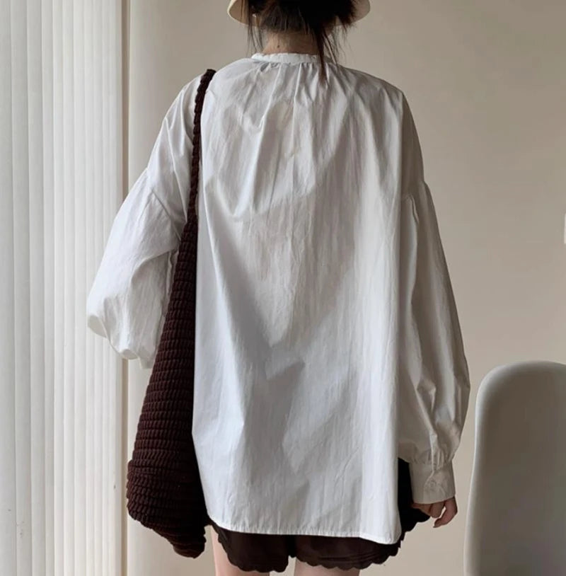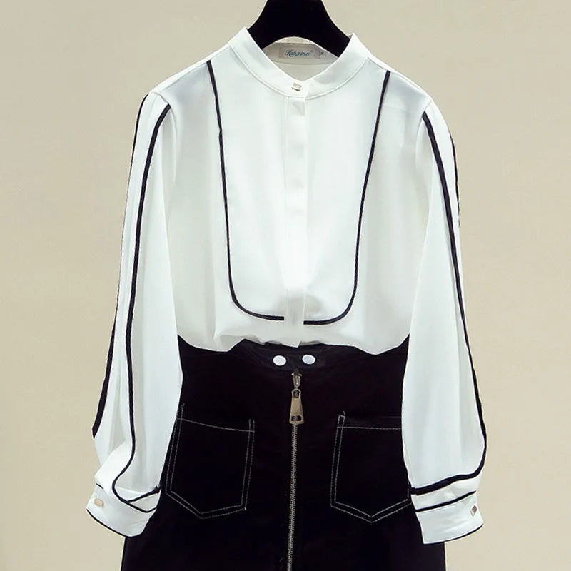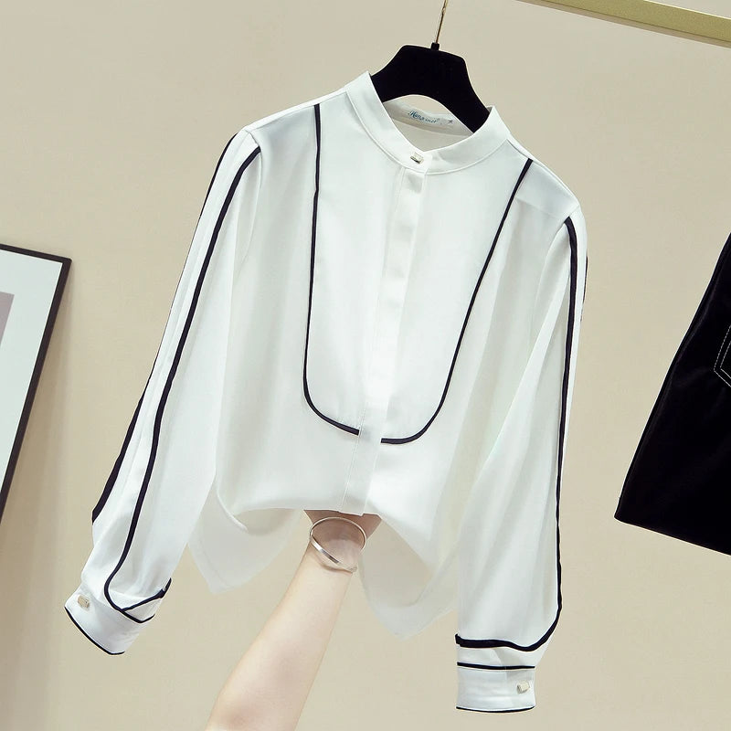 Women Shirt Blouse New Long Sleeve Stand Collar White Chiffon Shirt Blouse Women Tops Blouses Shirts Blusas Para Mujer 2025 Q685