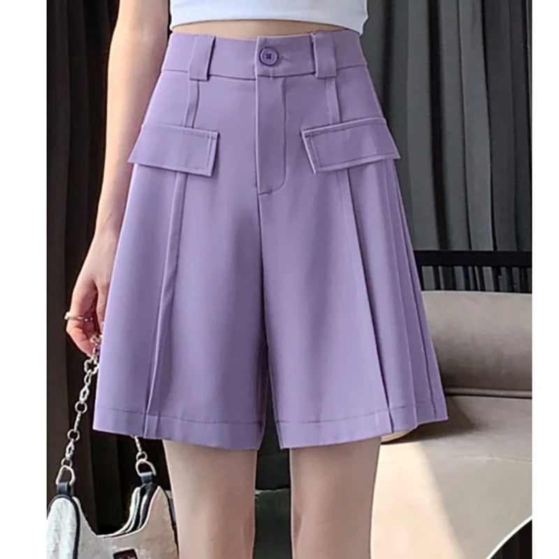 Women Shorts Spring Summer Casual High Waist A-line Shorts Loose Wide Leg Shorts Chic Lady Black White Suit Shorts