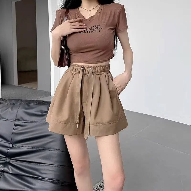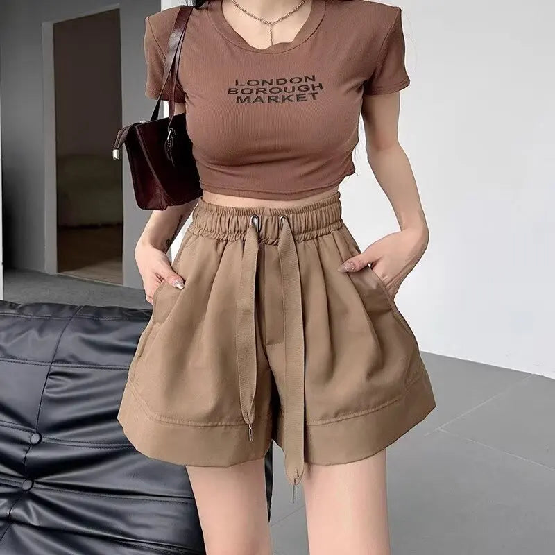 Twisted silk elastic high waisted wide leg pants for women in summer 2025, loose and slim casual shorts