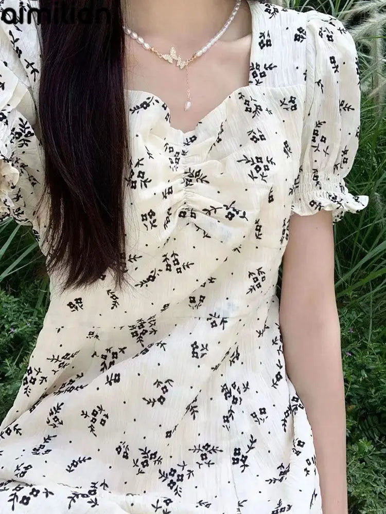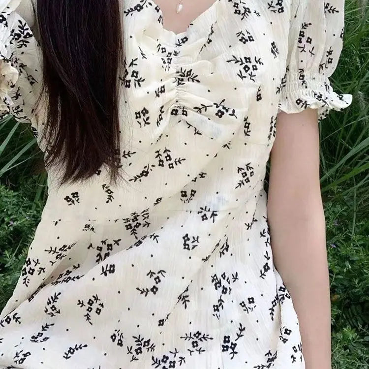 Style Sweet and Gentle Style Slit Floral Temperament Dress Korean Style Loose Flesh-reducing Age-reducing A-line Skirt Summer
