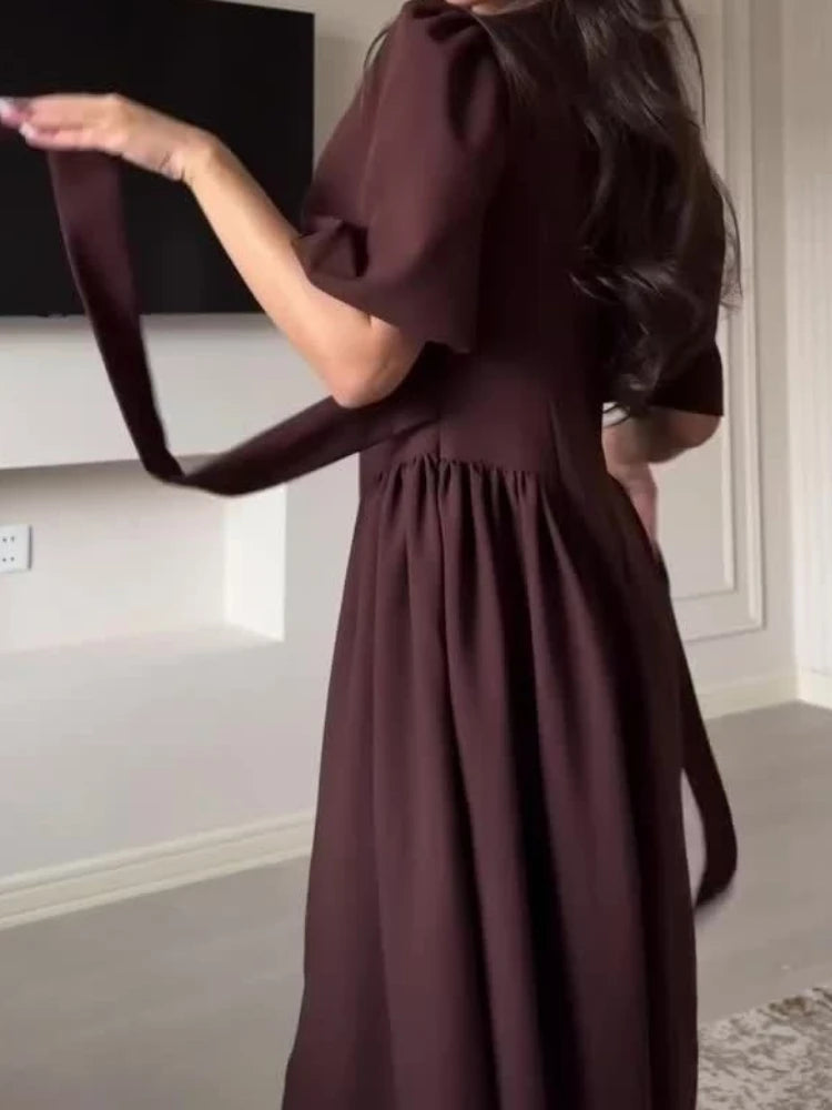 Fashion Tee Bow Lace-Up Long Dress For Women High Waist Short Sleeve Elegant Slim Party Dress Ladies Bandage Maxi Dress