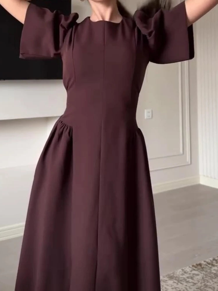 New Summer Style Women's Dress with Elegant Temperament. It Has A Round Neck Short Sleeves and A Large-swing Long Skirt Clothing