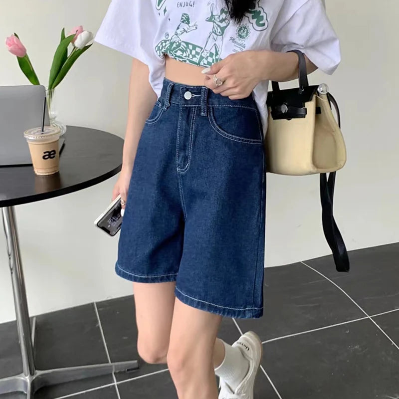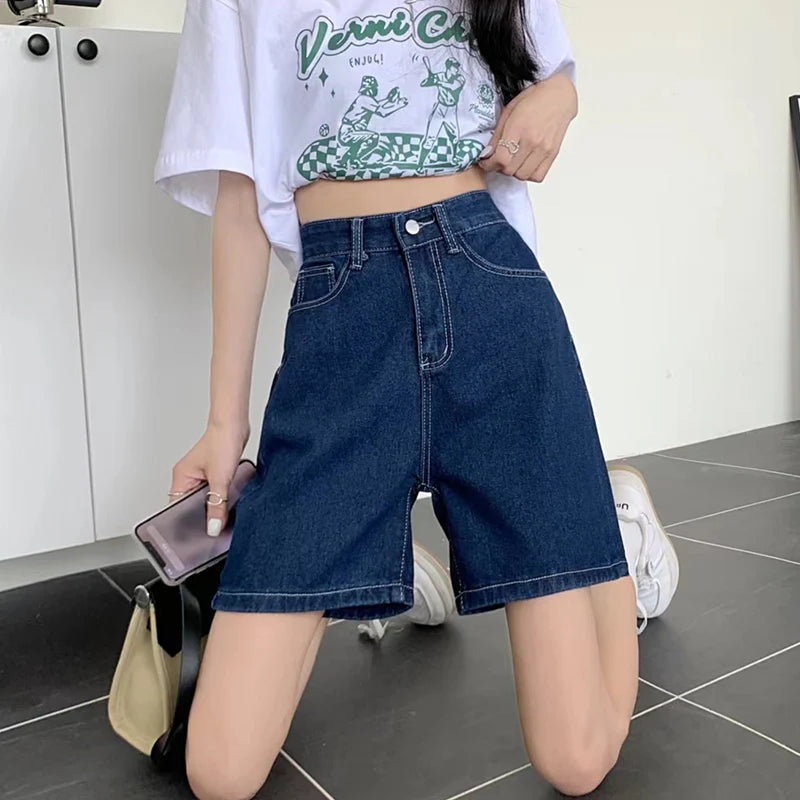 Summer Women Korean Style Baggy High Waist Short Jeans Casual Y2k 2000s Denim Pants Lady Blue Vintage Slacks Wide Leg Shorts