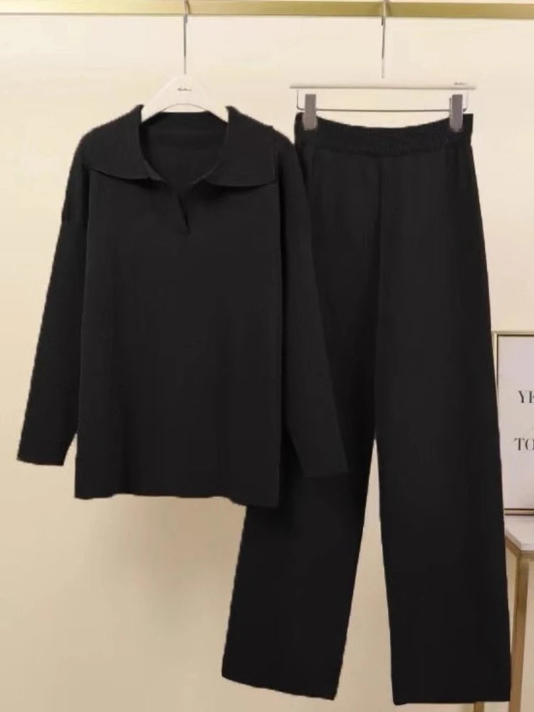 New in European American Autumn Winter Sweater Set Polo Neck Knitted Jumper + Wide-leg Trousers Set 2 Piece Sets Womens Outfits