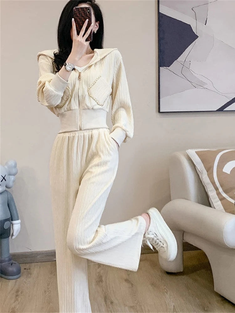 Fall New Sle Women's Casual Sport Set High-End Salt System Hoodie Wide Leg Pants Two-Piece Set Faionable Polyester Fabric