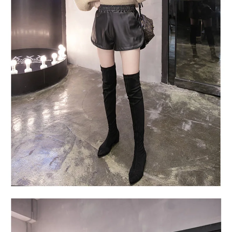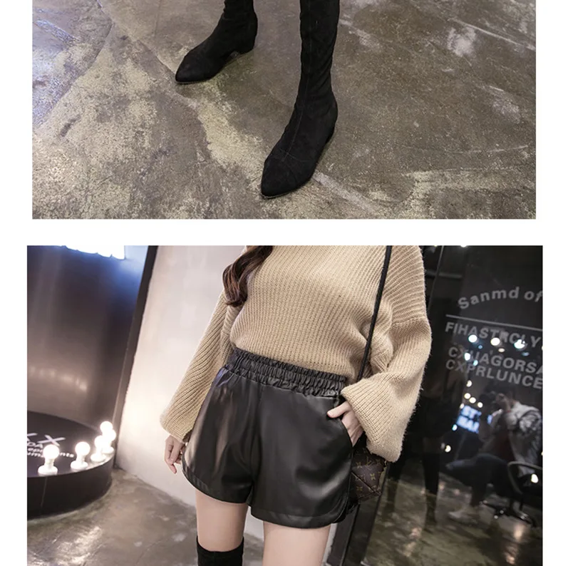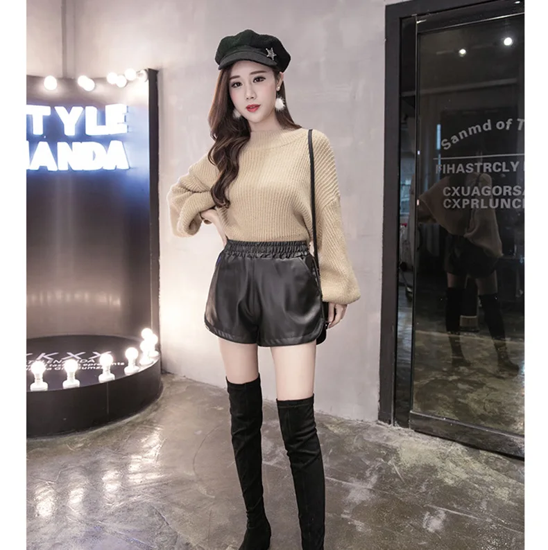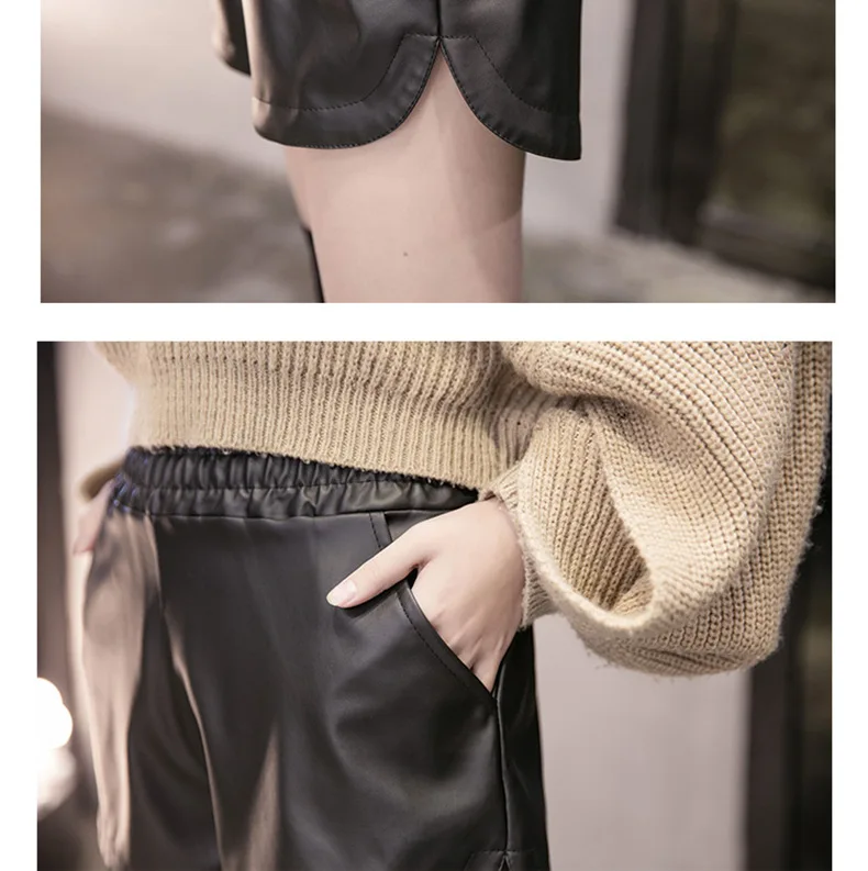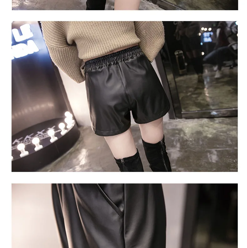 1pcs New Women Four Seasons Sexy Stretch Loose Black Faux Leather Shorts Female Casual Shorts Leather Lady High Waist Short Pant