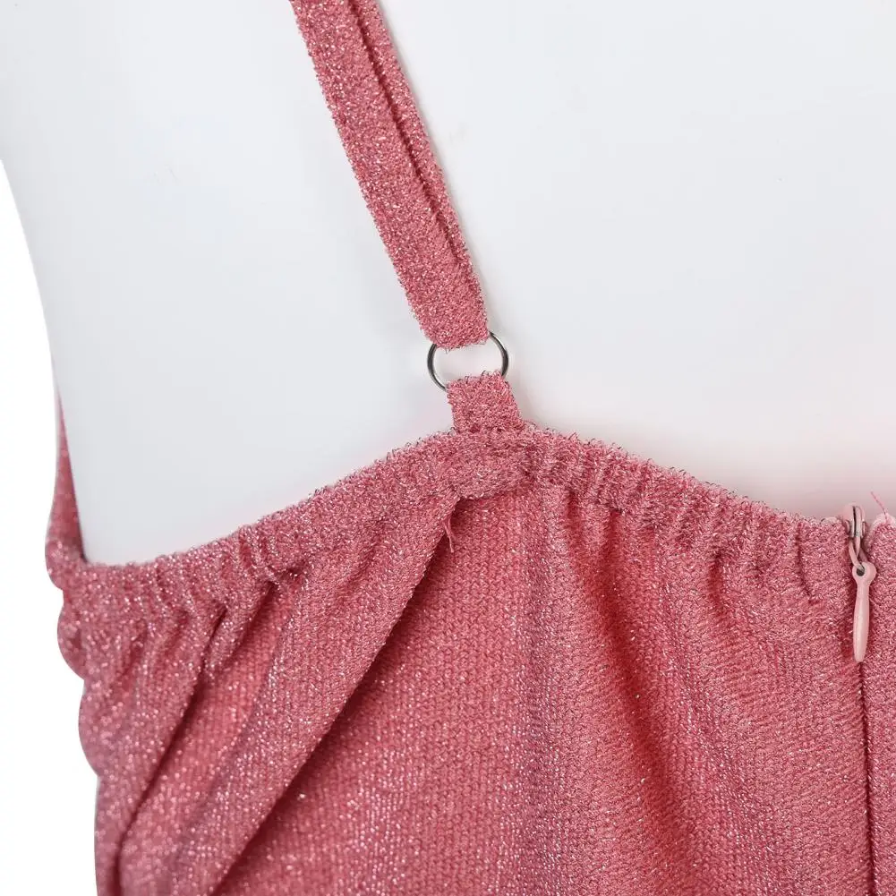 The slim-fitting design with thigh slits and a fishbone waist detail adds an elegant and sexy charm to the dress.